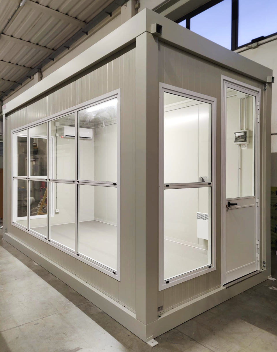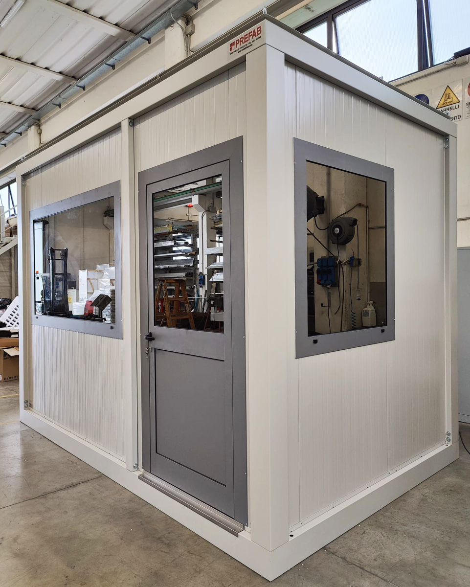 Forniamo cabine prefabbricate studiate con ampie vetrate sui tre o quattro lati, utili in vari contesti d'uso che richiedono di avere un grande campo visivo.