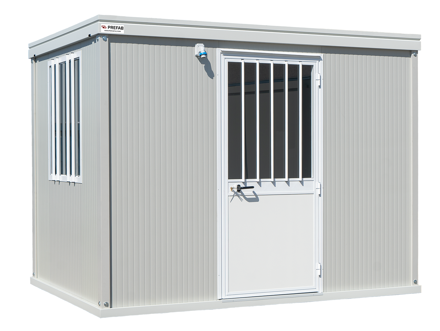 Modulo prefabbricato singolo Linea Eco con porta su lato lungo e finestra su lato corto.