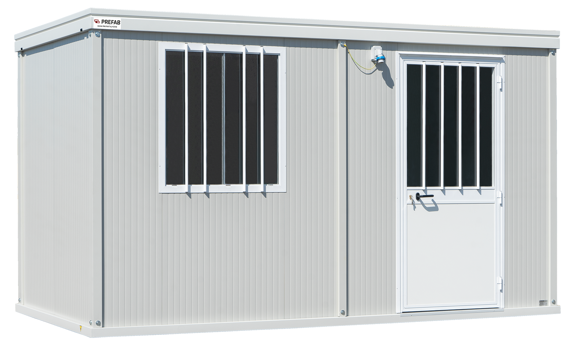 Modulo prefabbricato singolo Linea Eco con porta e finestra entrambe su lato lungo.