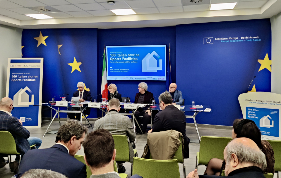 Il 5 dicembre 2024, presso la sala Europa Experience – David Sassoli a Roma, abbiamo partecipato alla presentazione del rapporto “100 Italian Stories – Sports Facilities”, un'iniziativa che mira a raccontare le eccellenze italiane nella filiera delle costruzioni e delle soluzioni sportive sostenibili, promossa da Fondazione Symbola e Fassa Bortolo, in collaborazione con l’ICSC - Istituto per il Credito Sportivo e Culturale.