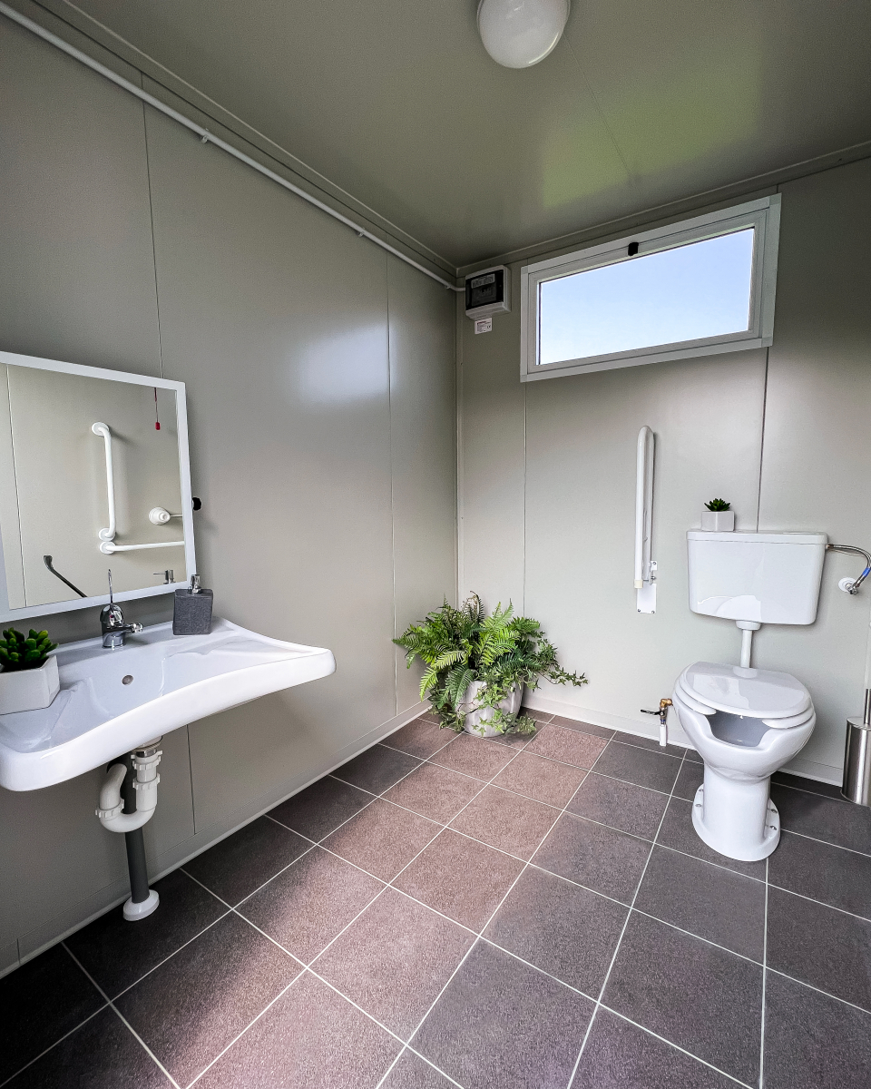 Questi moduli rispettano i requisiti di spazio per facilitare l'accesso con carrozzine e sono dotati di supporti adeguati per garantire l'utilizzo sicuro e autonomo da parte di persone con disabilità. Tutte le nostre soluzioni di servizi igienici necessitano dell'allaccio alla rete fognaria.