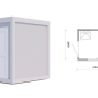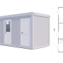 Linea di moduli prefabbricati coibentati in acciaio, completi di bagno configurato in base alle caratteristiche previste dalle norme vigenti per i disabili.