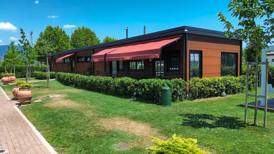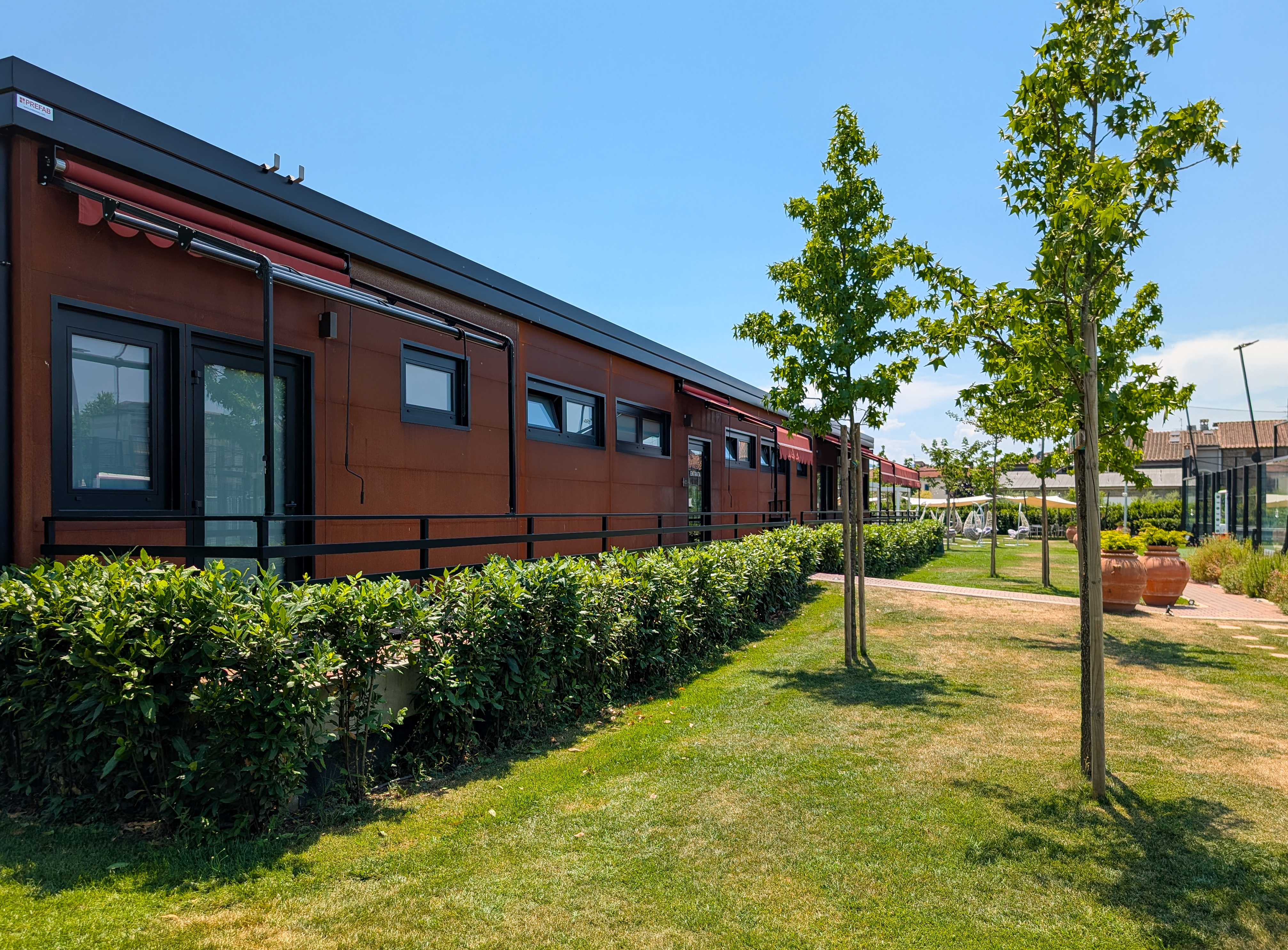 Gli spogliatoi sono stati realizzati con la tecnologia modulare prefabbricata,